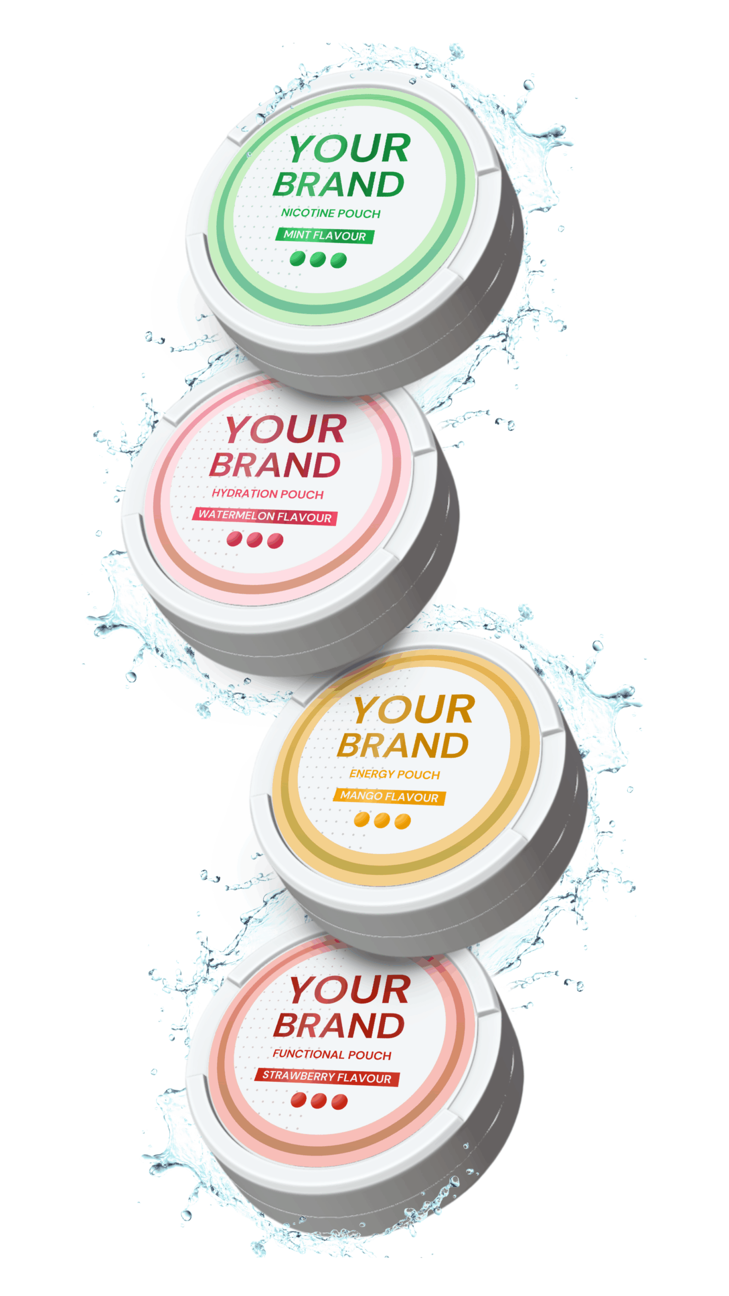 - Customizable pouch format, strength, and flavour